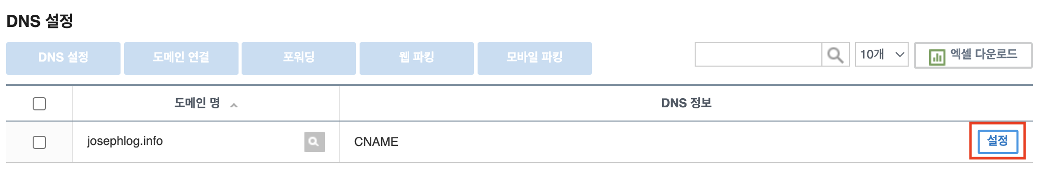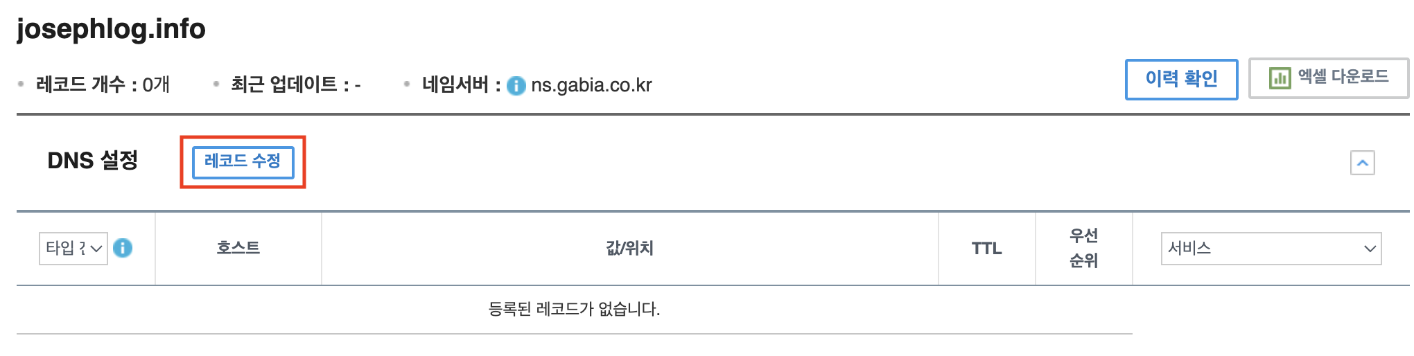 - My가비아 -> DNS관리툴 -> 설정 클릭