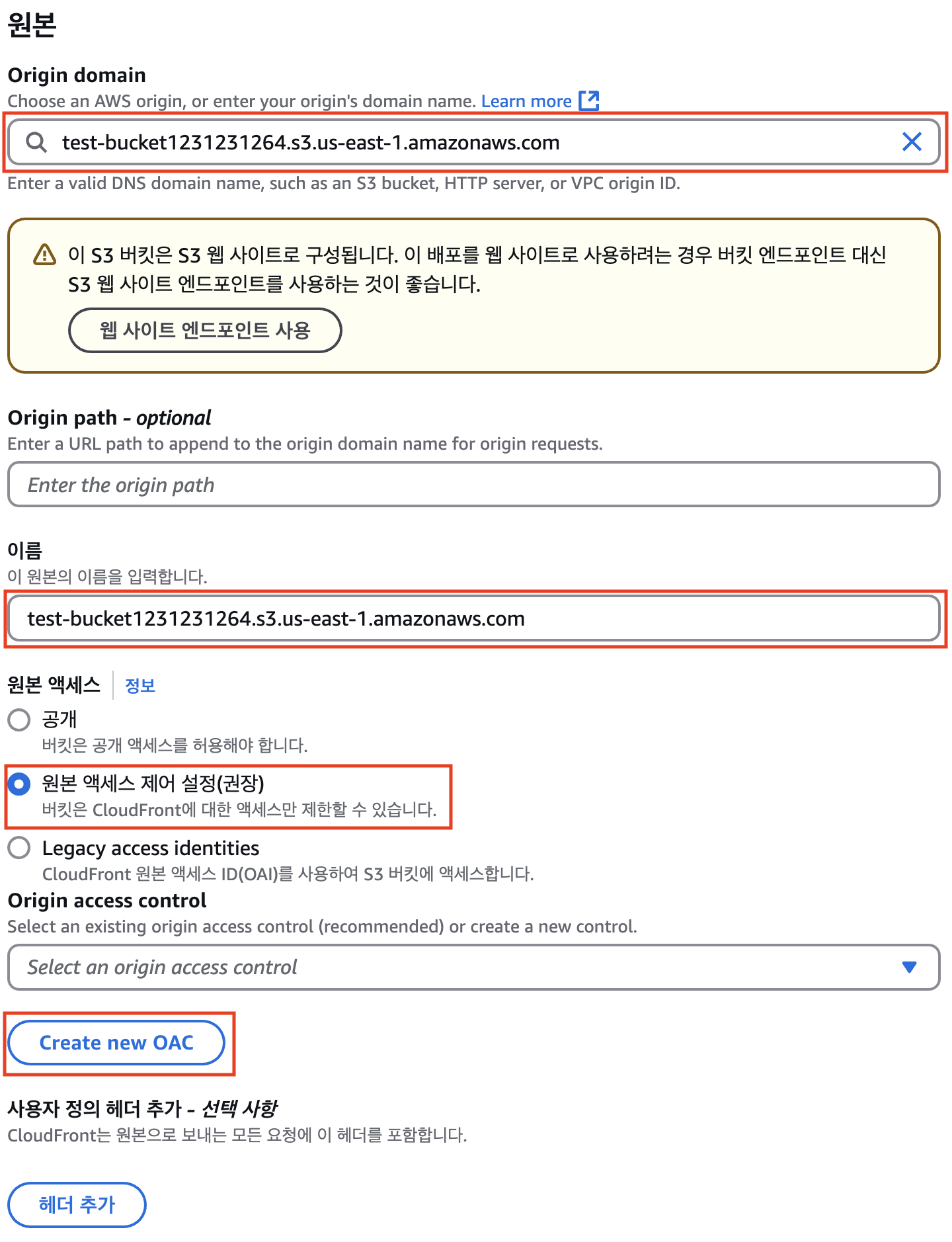Origin Domain - 연결하고자 하는 버킷을 선택