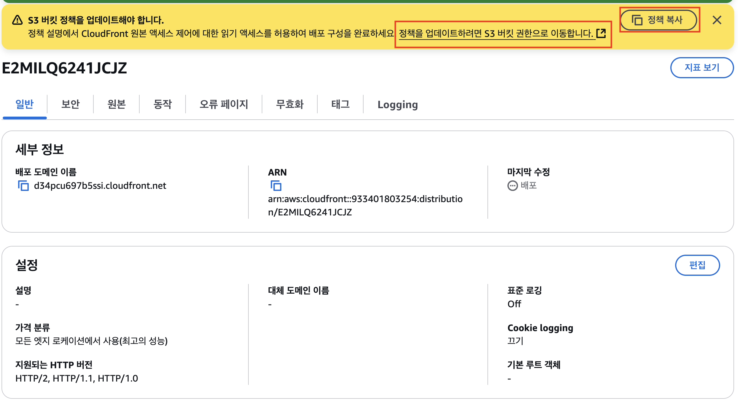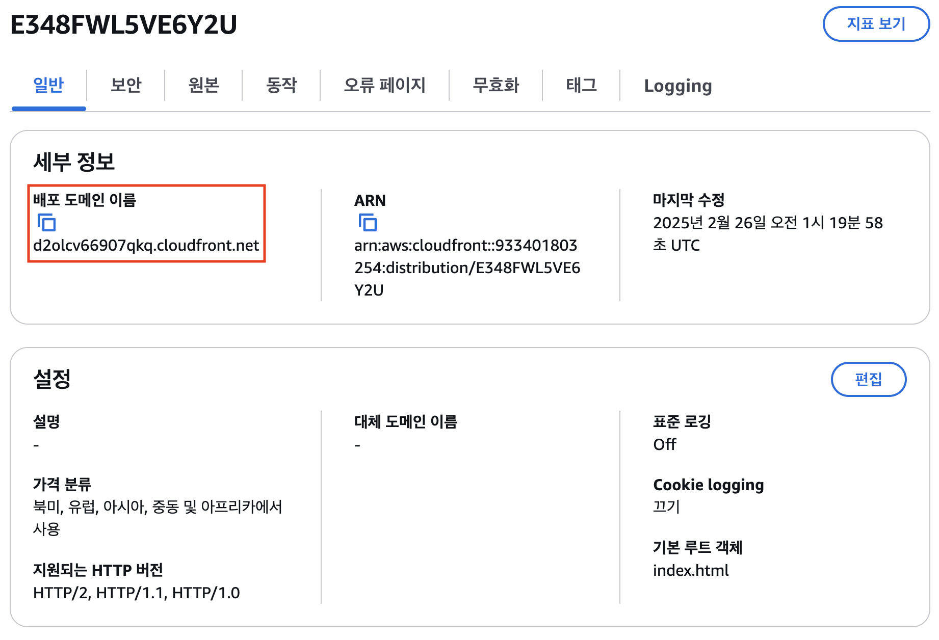CloudFront 생성이 완료되면 아래와 같이 된다.